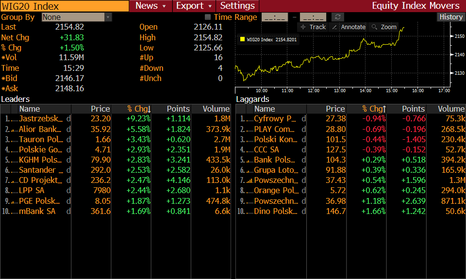 Spółki z indeksu WIG20. Źródło: Bloomberg