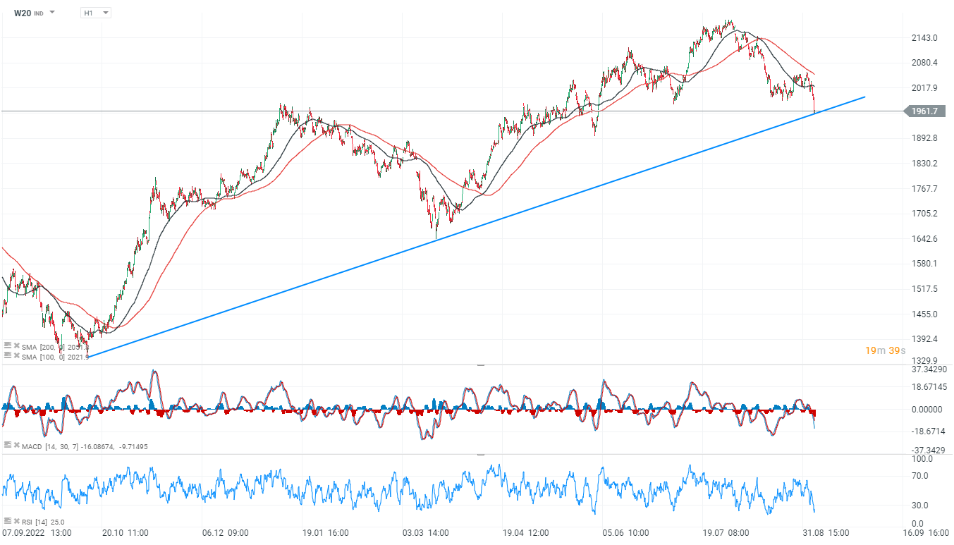 - W20 notuje ponad 2,1% wyprzedaż i osuwa się poniżej 2000 punktów