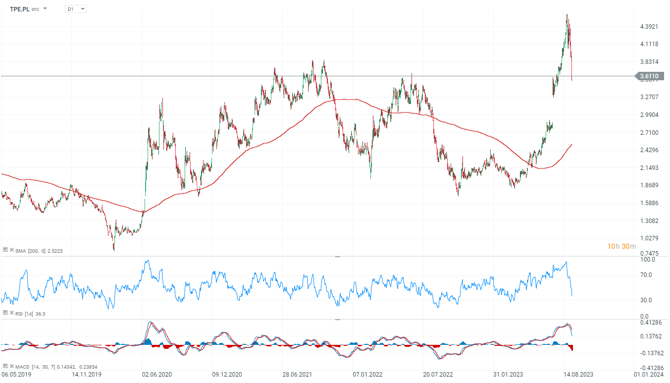 - Tauron (TPE.PL) notuje blisko 8% wyprzedaż, Enea (ENA.PL) traci 6%