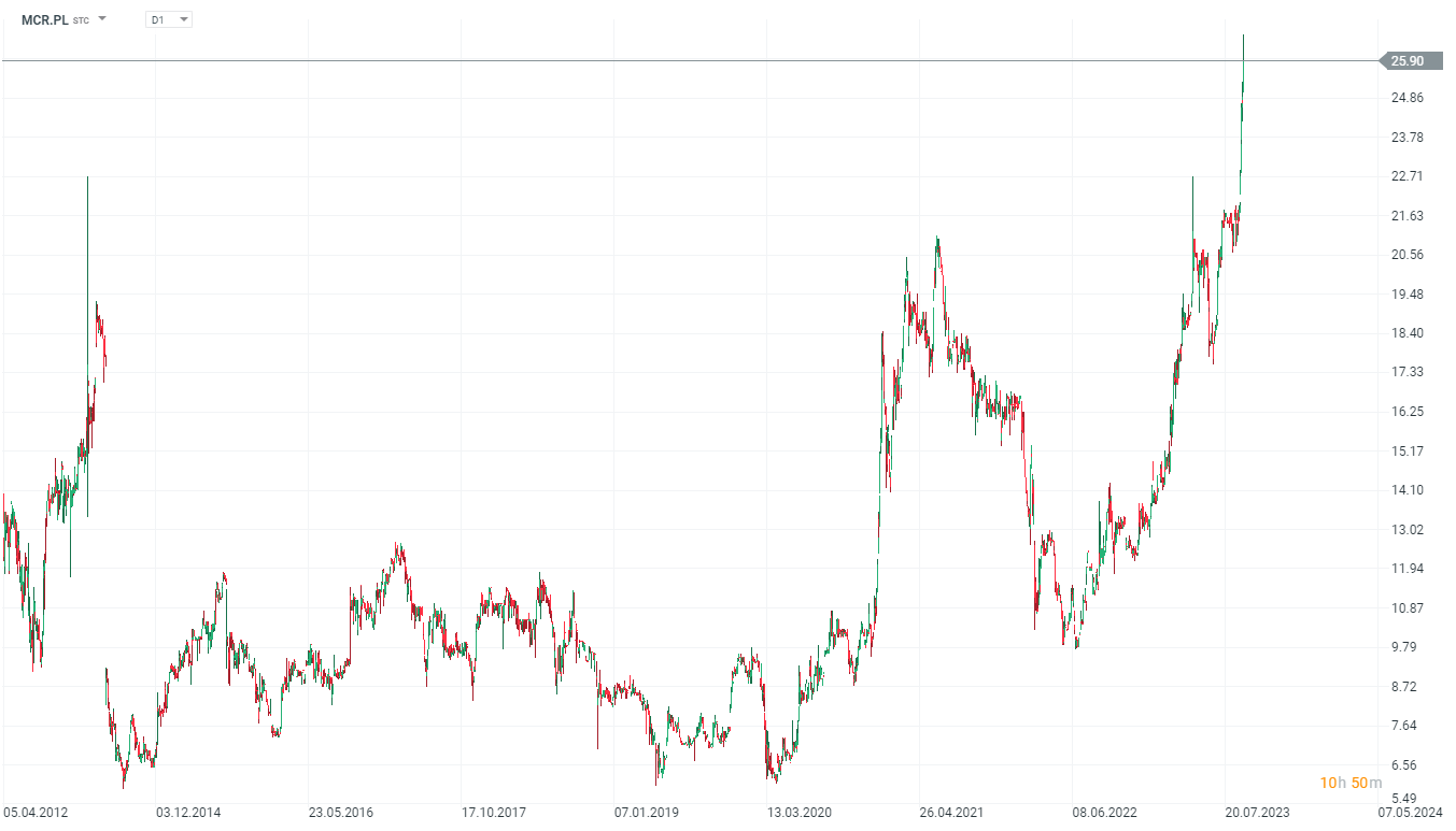 Akcje Mercor zyskują dziś ponad 4% i znajdują się na poziomie historycznych szczytów. Źródło: xStation5