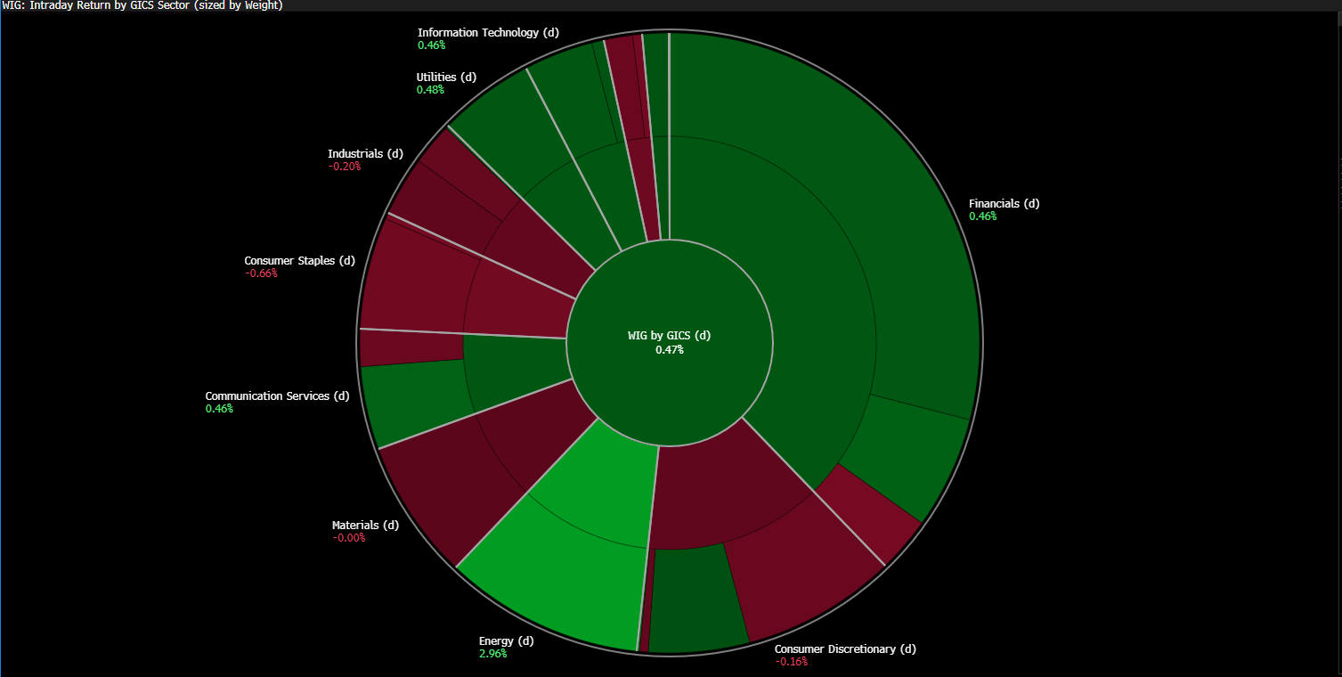 Podział indeksu WIG na sektory. Źródło: Bloomberg Finance L.P.