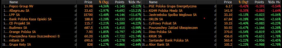 Spółki wchodzące w skład indeksu WIG20. Źródło: Bloomberg Finance L.P.