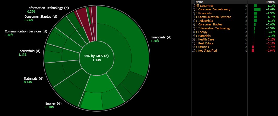Wyniki sektorów wchodzących w skład indeksu WIG. Źródło: Bloomberg Finance L.P.