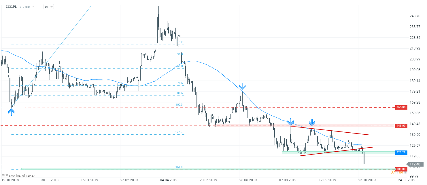 Akcje CCC tracą pod koniec czwartkowej sesji blisko 9%!