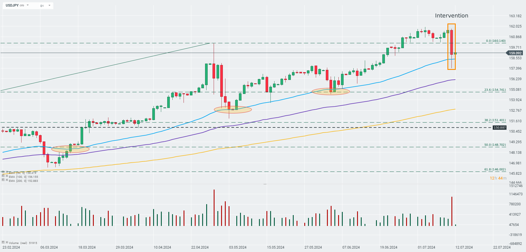 Japonia wkroczyła wczoraj na rynki walutowe po raz trzeci w tym roku, aby wesprzeć jena wkrótce po czwartkowych danych o inflacji w USA, wynika z analizy rachunków banku centralnego. Skala interwencji wyniosła prawdopodobnie około 3,5 biliona jenów, opierając się na porównaniu rachunków Banku Japonii i prognoz brokerów pieniężnych. Dane wskazują, że japońskie władze walutowe próbowały wykorzystać wzrost oczekiwań na obniżkę stóp procentowych przez Rezerwę Federalną natychmiast po tym, jak dane pokazały, że inflacja w USA znacznie spadła.