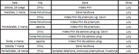 Dowody, które przedstawiliśmy w pierwszym paragrafie dają nam obraz dotyczący tego, jakie szkody zostały już poczynione. Sytuacja będzie bardziej kompletna w momencie publikacji raportów makroekonomicznych, które bedą dotyczyły okresu związanego z rozprzestrzenieniem się epidemii. W trakcie weekendu Chiny opublikują pierwsze indeksy PMI, natomiast Korea Południowa przedstawi dane dotyczące handlu. Biorąc pod uwagę ograniczone zaufanie do chińskich danych, dane handlowe z Korei oraz indeksy PMI powinny w najlepszym stopniu obrazować wpływ koronawirusa na gospodarkę. Dane z Korei Południowej nie pokażą jednak jednak ostatniego pogorszenia się sytuacji (ze względu na to, iż wybuch ilości przypadków miał miejsce ostatnio), choć pokażą jaki wpływ na dane miały chińskie problemy.