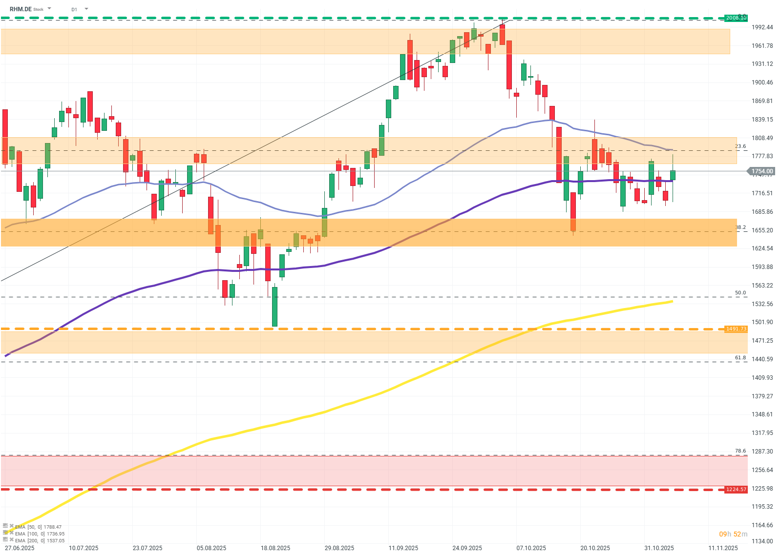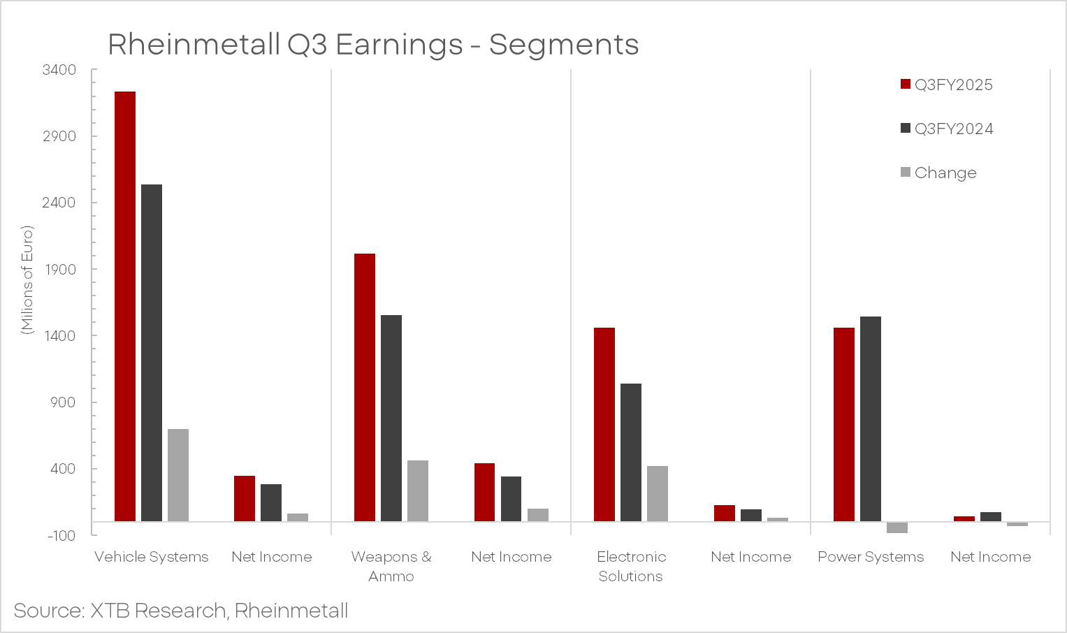 Spółka wzrosła o ok. 3% na otwarciu po publikacji wyników co wskazuje, że spółka zdała kolejny test, jaki przygotował dla niej rynek. Grupa Rheinmetall osiąga konsekwentne wzrosty rzadko widywane na Europejskim parkiecie, zwłaszcza wśród spółek przemysłowych.