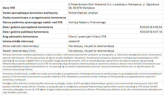 Ta publikacja handlowa jest informacyjna i edukacyjna. Nie jest rekomendacją inwestycyjną ani informacją rekomendującą lub sugerującą strategię inwestycyjną. W materiale nie sugerujemy żadnej strategii inwestycyjnej ani nie świadczymy usługi doradztwa inwestycyjnego. Materiał nie uwzględnia indywidualnej sytuacji finansowej, potrzeb i celów inwestycyjnych klienta. Nie jest też ofertą sprzedaży ani subskrypcji. Nie jest zaproszeniem do nabycia, reklamą ani promocją jakichkolwiek instrumentów finansowych. Publikację handlową przygotowaliśmy starannie i obiektywnie. Przedstawiamy stan faktyczny znany autorom w chwili tworzenia dokumentu. Nie umieszczamy w nim żadnych elementów oceniających. Informacje i badania oparte na historycznych danych lub wynikach oraz prognozy nie stanowią pewnego wskaźnika na przyszłość. Nie odpowiadamy za Twoje działania lub zaniechania, zwłaszcza za to, że zdecydujesz się nabyć lub zbyć instrumenty finansowe na podstawie informacji z tej publikacji handlowej. Nie odpowiadamy też za szkody, które mogą wynikać z bezpośredniego czy też pośredniego wykorzystania tych informacji. Inwestowanie jest ryzykowne. Inwestuj odpowiedzialnie.