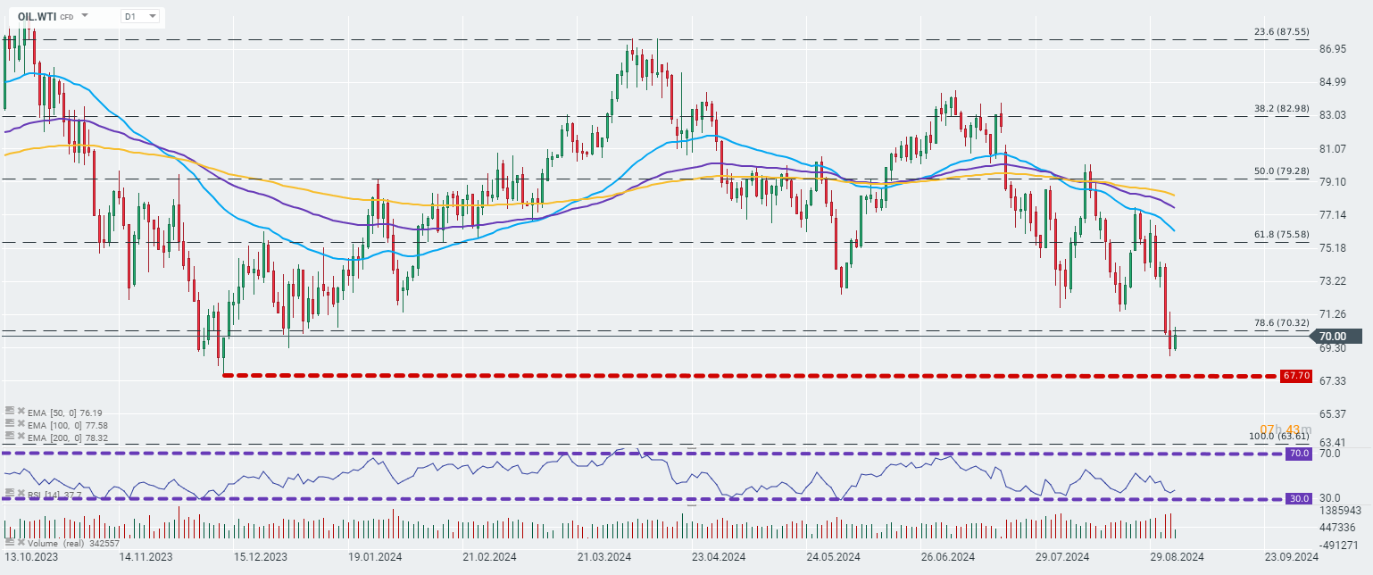 Ceny ropy WTI zyskały na wartości w ciągu ostatnich minut po komunikacie Delegate o zatrzymaniu planowanego zwiększenia wydobycia ropy o 2 miesiące.