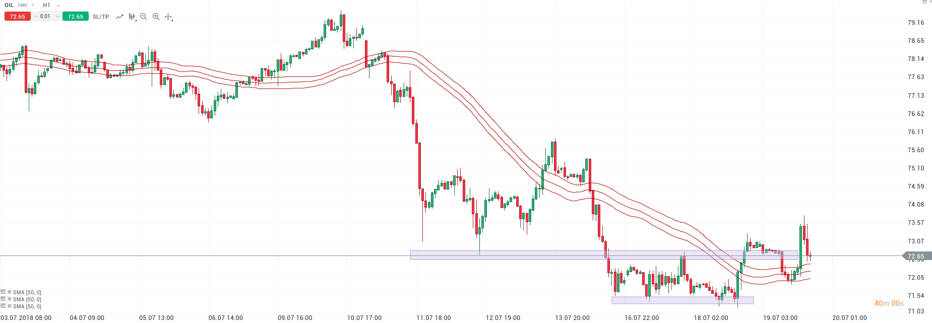 Adeeb Al Aama - przedstawiciel Arabii Saudyjskiej w OPEC stwierdził, że królestwo w najbliższym czasie planuje zmniejszenie eksportu o 100 tys. baryłek dziennie w sierpniu. Zaprzeczył on także, że mamy obecnie do czynienia z nadpodażą na rynku ropy. Nie będzie to z pewnością dobra wiadomość dla Trumpa, który chciałby zwiększenia produkcji wśród krajów OPEC w jak największym stopniu oraz utrzymaniu cen benzyny na stacjach w okolicach 3$ za galon do listopadowych wyborów do Kongresu. Za silne wzrosty cen ropy pod koniec czerwca głównie odpowiedzialne było odnowienie sankcji na Iran, który jest piątym największym producentem na rynku.