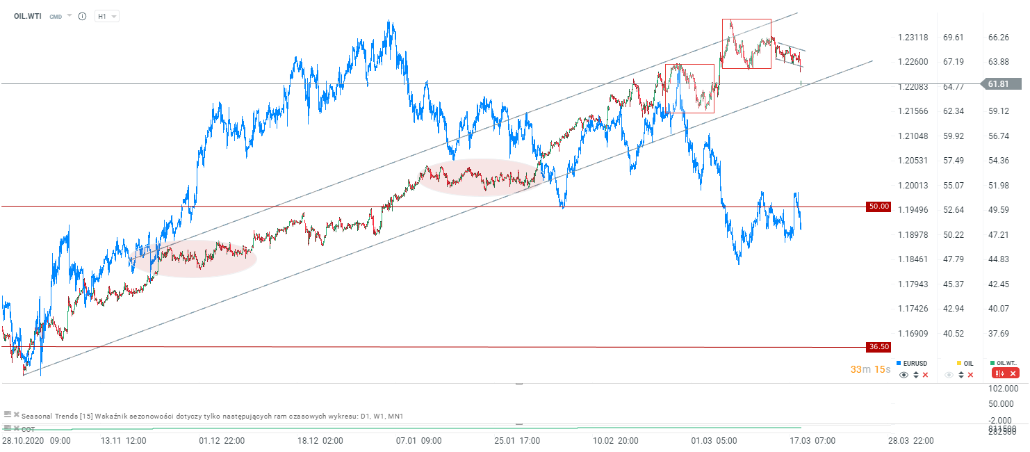 Ropa testuje kluczowe wsparcie. Po jego ewentualnym przełamaniu celem będą okolice 60 dolarów za baryłkę, choć poziom 59 stanowi również dolne ograniczenie konsolidacji z drugiej połowy lutego. Źródło: xStation5