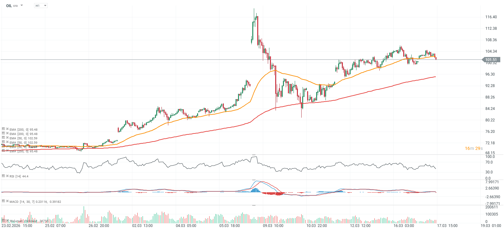 Kontrakty na ropę Brent (OIL) cofają się dziś do 101 USD za baryłkę, sygnalizując rosnące nadzieje rynku na stopniową deeskalację wojny Izraela i USA z Iranem. Wydaje się, że częstotliwość ataków z obu państwa może zacząć spadać, co rynek odczyta jako miejsce do zawieszenia broni dla Teheranu. Komentarze izraelskich źródeł sugerują, że Iran już teraz prowadzi rozmowy mające doprowadzić do końca wojny. Co prawda nie jest możliwa ich weryfikacja, ale inwestorzy nie dają dużych szans temu, że Iran będzie chciał toczyc wojnę nawet po tym jak Izrael i USA zaprzestaną ataków.