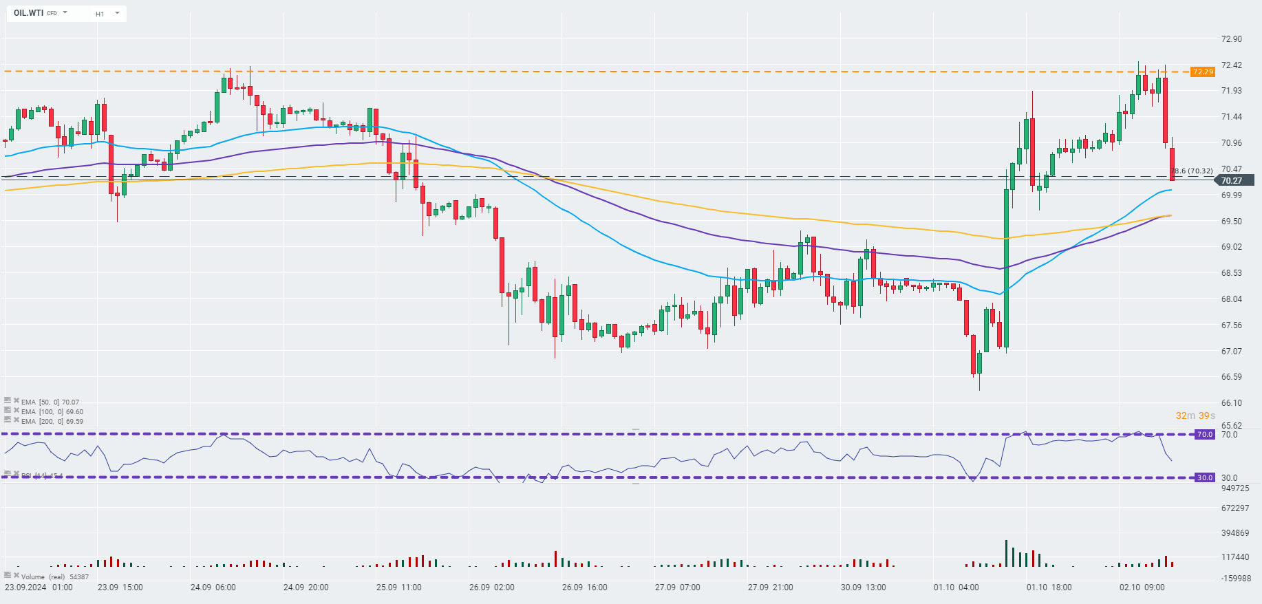 Ropa WTI odwraca wczesne wzrosty, ponieważ OPEC+ zgodziło się złagodzić cięcia produkcji w grudniu, według raportów WSJ. Ponadto OPEC poinformował, że organizacja współpracuje z Rosją, Kazachstanem i Irakiem w celu zrównoważenia przeszłej nadprodukcji. Ropa jest również pod presją wyższych niż oczekiwano zapasów w USA.