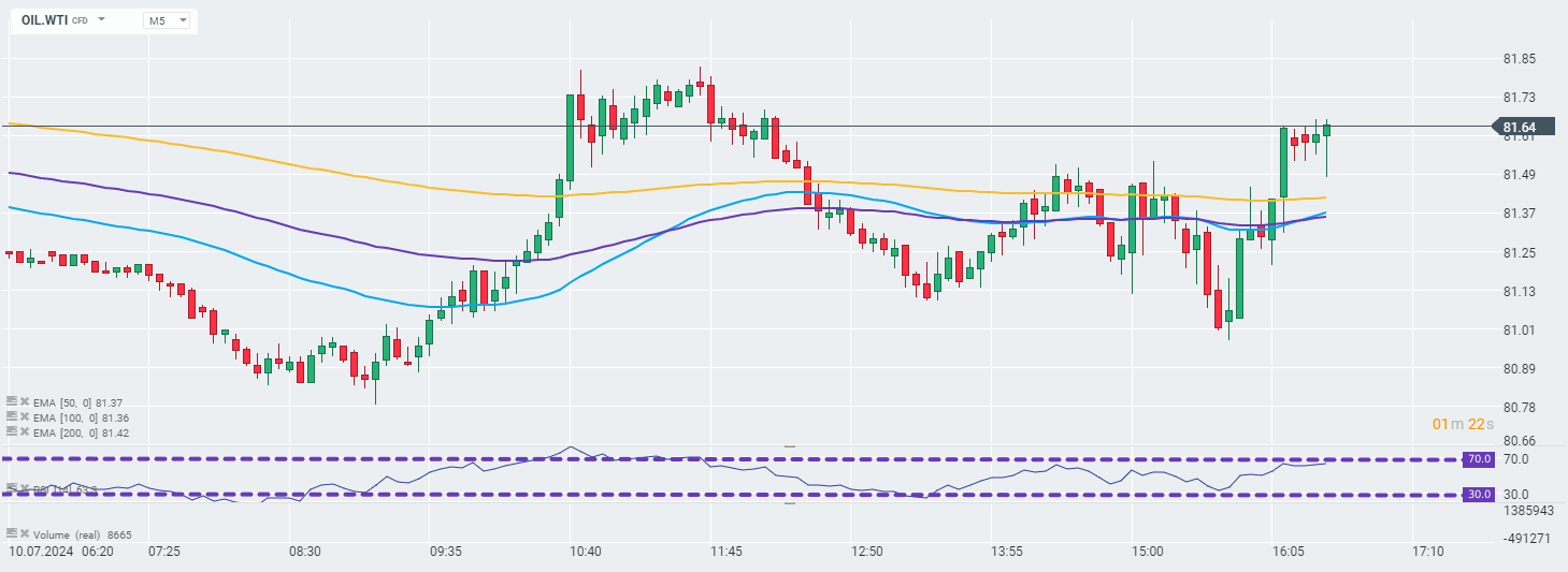 Ropa WTI nieznacznie zyskuje po odczycie DOE. Źródło: xStation