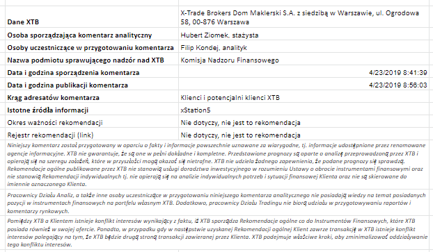 Ta publikacja handlowa jest informacyjna i edukacyjna. Nie jest rekomendacją inwestycyjną ani informacją rekomendującą lub sugerującą strategię inwestycyjną. W materiale nie sugerujemy żadnej strategii inwestycyjnej ani nie świadczymy usługi doradztwa inwestycyjnego. Materiał nie uwzględnia indywidualnej sytuacji finansowej, potrzeb i celów inwestycyjnych klienta. Nie jest też ofertą sprzedaży ani subskrypcji. Nie jest zaproszeniem do nabycia, reklamą ani promocją jakichkolwiek instrumentów finansowych. Publikację handlową przygotowaliśmy starannie i obiektywnie. Przedstawiamy stan faktyczny znany autorom w chwili tworzenia dokumentu. Nie umieszczamy w nim żadnych elementów oceniających. Informacje i badania oparte na historycznych danych lub wynikach oraz prognozy nie stanowią pewnego wskaźnika na przyszłość. Nie odpowiadamy za Twoje działania lub zaniechania, zwłaszcza za to, że zdecydujesz się nabyć lub zbyć instrumenty finansowe na podstawie informacji z tej publikacji handlowej. Nie odpowiadamy też za szkody, które mogą wynikać z bezpośredniego czy też pośredniego wykorzystania tych informacji. Inwestowanie jest ryzykowne. Inwestuj odpowiedzialnie.