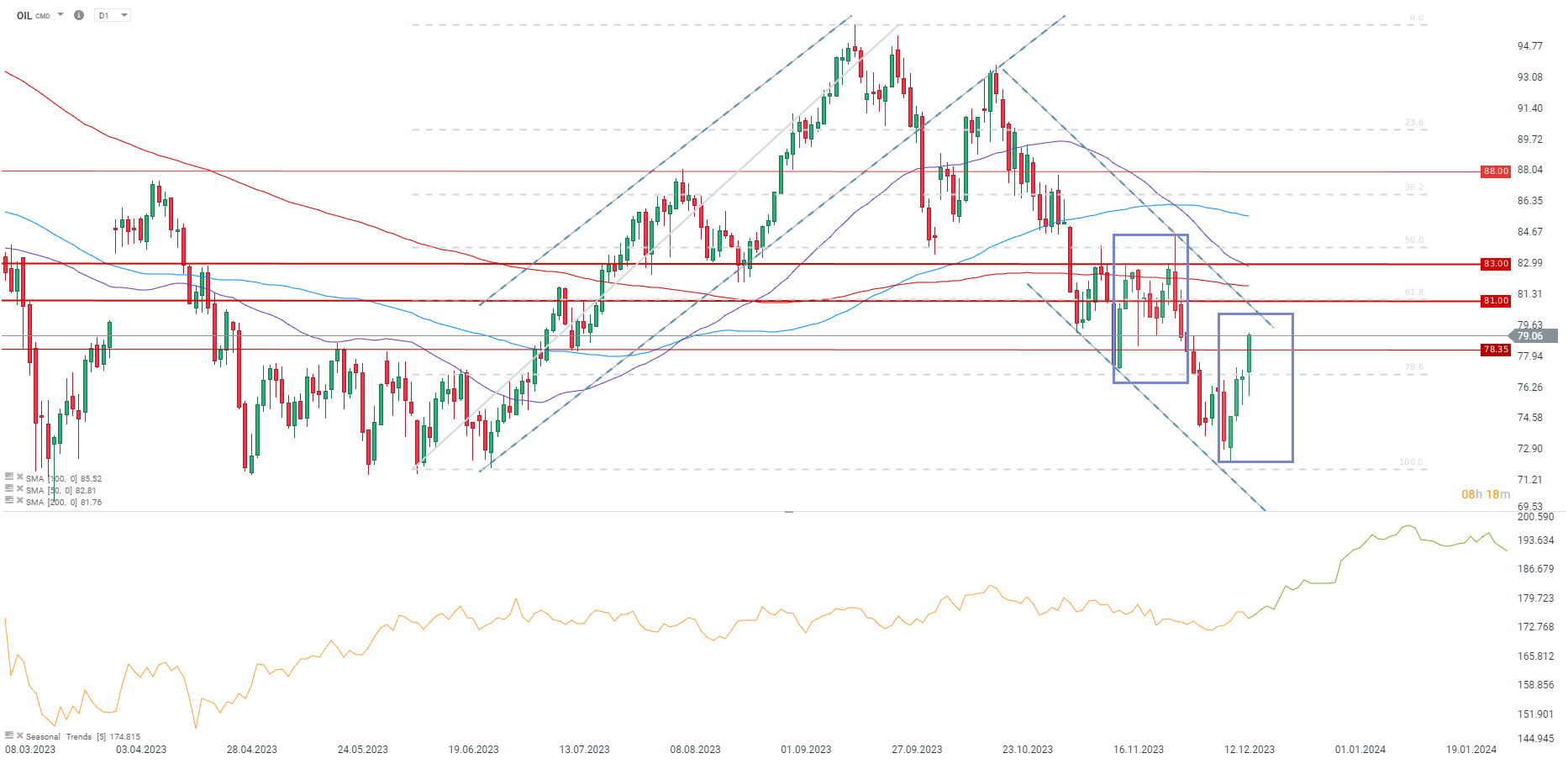 Warto pamiętać, że są to prawdopodobnie czynniki jednorazowe, choć oczywiście takie wskaźniki jak sezonowość czy pozycjonowanie inwestorów spekulacyjnych sugerowały krótkoterminowy dołek na rynku ropy.