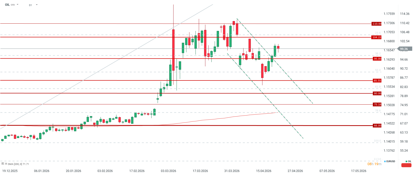 - Cena baryłki Brent (Physical): Wzrost z ~75 USD do ~100-150 USD.