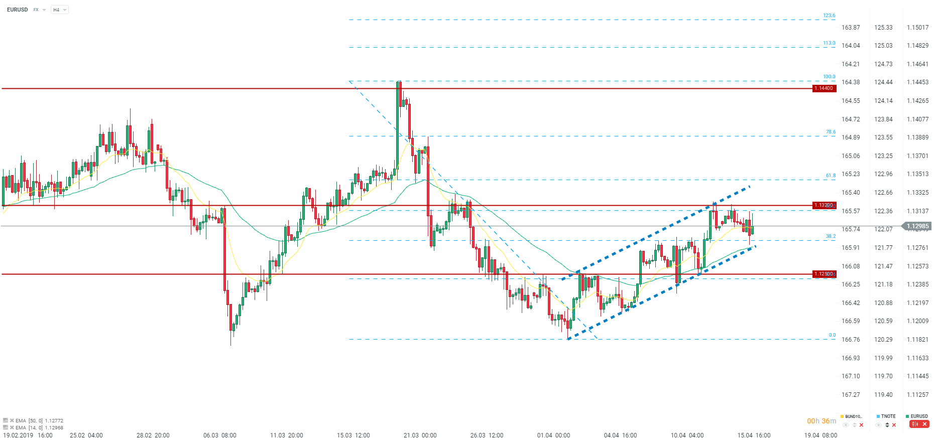 EURUSD minimalnie odbija tuż po publikacji danych, ale w dalszym ciągu widoczna jest spora podaż znajdująca się powyżej poziomu 1,1300. Źródło: xStation5