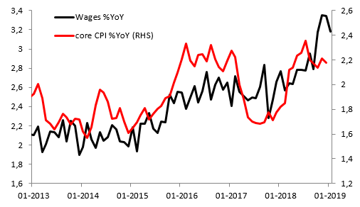 Dynamika płac m/m: 0,1 % (oczekiwano: 0,3%); poprzednio: 0,4%