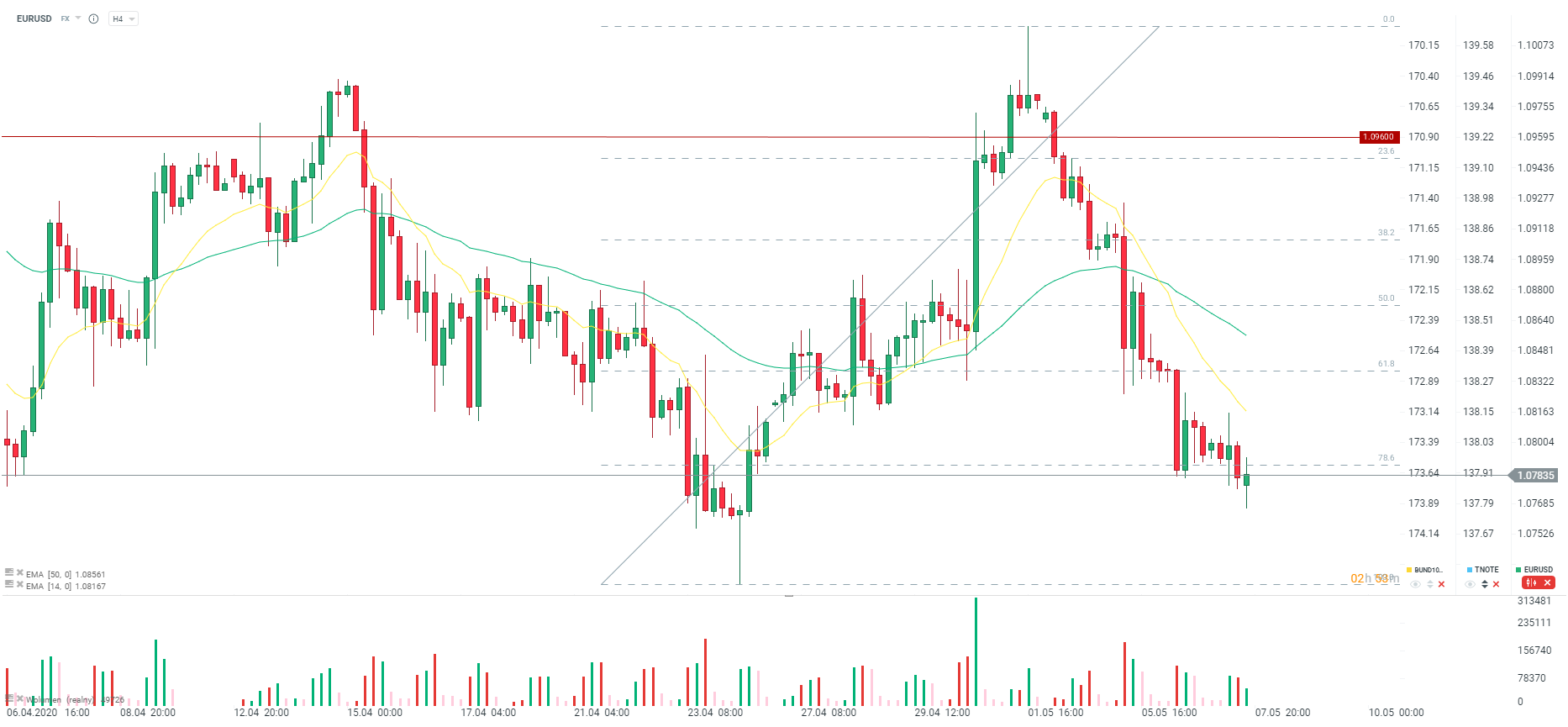 Dolar minimalnie osłabia się w ostatnich minutach. Źródło: xStation5