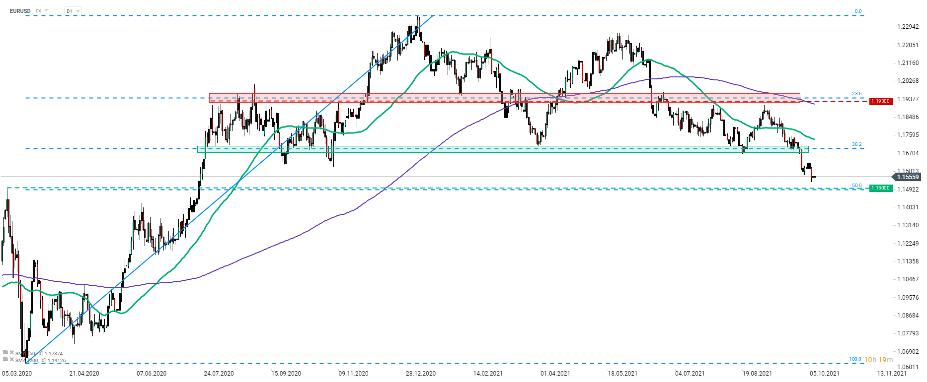 Kurs EURUSD spadł do 14-miesięcznego minimum na początku tego tygodnia i od tego czasu ma trudności z odreagowaniem. Solidny odczyt wzrostu zatrudnienia może doprowadzić do większego zejścia w dół przez EURUSD. Pierwszy kluczowe wsparcie to 1,1500. Źródło: xStation5
