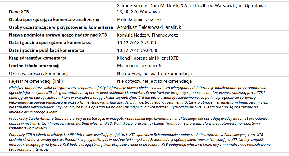 Ta publikacja handlowa jest informacyjna i edukacyjna. Nie jest rekomendacją inwestycyjną ani informacją rekomendującą lub sugerującą strategię inwestycyjną. W materiale nie sugerujemy żadnej strategii inwestycyjnej ani nie świadczymy usługi doradztwa inwestycyjnego. Materiał nie uwzględnia indywidualnej sytuacji finansowej, potrzeb i celów inwestycyjnych klienta. Nie jest też ofertą sprzedaży ani subskrypcji. Nie jest zaproszeniem do nabycia, reklamą ani promocją jakichkolwiek instrumentów finansowych. Publikację handlową przygotowaliśmy starannie i obiektywnie. Przedstawiamy stan faktyczny znany autorom w chwili tworzenia dokumentu. Nie umieszczamy w nim żadnych elementów oceniających. Informacje i badania oparte na historycznych danych lub wynikach oraz prognozy nie stanowią pewnego wskaźnika na przyszłość. Nie odpowiadamy za Twoje działania lub zaniechania, zwłaszcza za to, że zdecydujesz się nabyć lub zbyć instrumenty finansowe na podstawie informacji z tej publikacji handlowej. Nie odpowiadamy też za szkody, które mogą wynikać z bezpośredniego czy też pośredniego wykorzystania tych informacji. Inwestowanie jest ryzykowne. Inwestuj odpowiedzialnie.