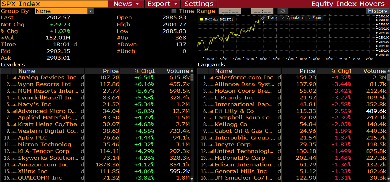 Spółki z indeksu S&P 500 o godzinie 18:01. Źródło: xStation5