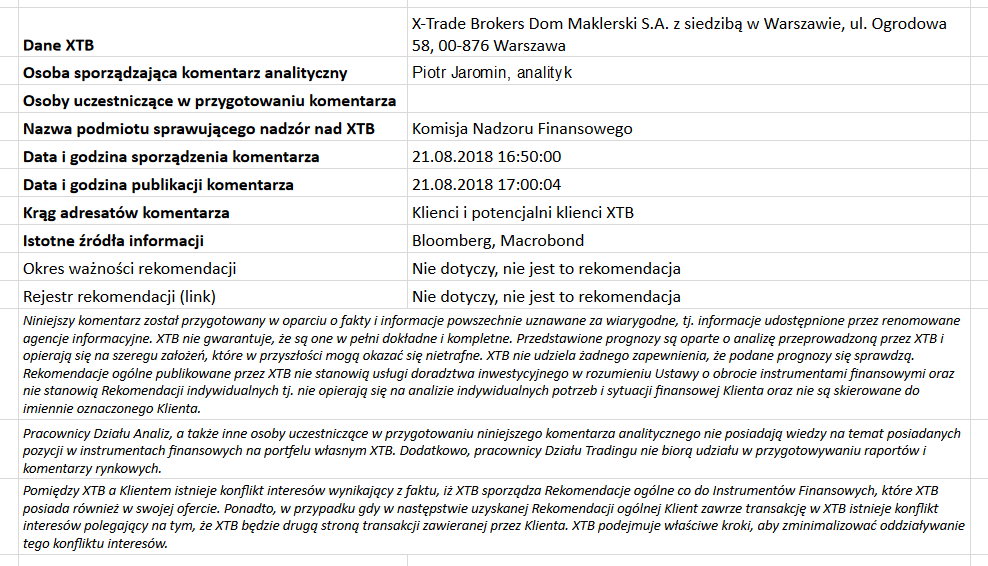 Ta publikacja handlowa jest informacyjna i edukacyjna. Nie jest rekomendacją inwestycyjną ani informacją rekomendującą lub sugerującą strategię inwestycyjną. W materiale nie sugerujemy żadnej strategii inwestycyjnej ani nie świadczymy usługi doradztwa inwestycyjnego. Materiał nie uwzględnia indywidualnej sytuacji finansowej, potrzeb i celów inwestycyjnych klienta. Nie jest też ofertą sprzedaży ani subskrypcji. Nie jest zaproszeniem do nabycia, reklamą ani promocją jakichkolwiek instrumentów finansowych. Publikację handlową przygotowaliśmy starannie i obiektywnie. Przedstawiamy stan faktyczny znany autorom w chwili tworzenia dokumentu. Nie umieszczamy w nim żadnych elementów oceniających. Informacje i badania oparte na historycznych danych lub wynikach oraz prognozy nie stanowią pewnego wskaźnika na przyszłość. Nie odpowiadamy za Twoje działania lub zaniechania, zwłaszcza za to, że zdecydujesz się nabyć lub zbyć instrumenty finansowe na podstawie informacji z tej publikacji handlowej. Nie odpowiadamy też za szkody, które mogą wynikać z bezpośredniego czy też pośredniego wykorzystania tych informacji. Inwestowanie jest ryzykowne. Inwestuj odpowiedzialnie.