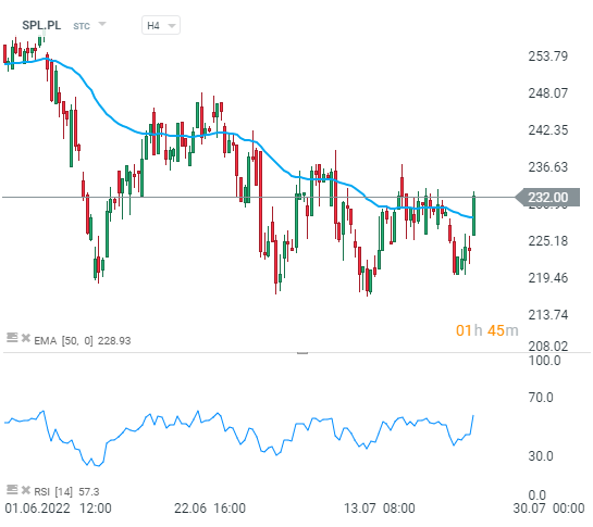 Wykres notowań akcji Santander Polska (SPL.PL), interwał H4. Źródło: xStation 5