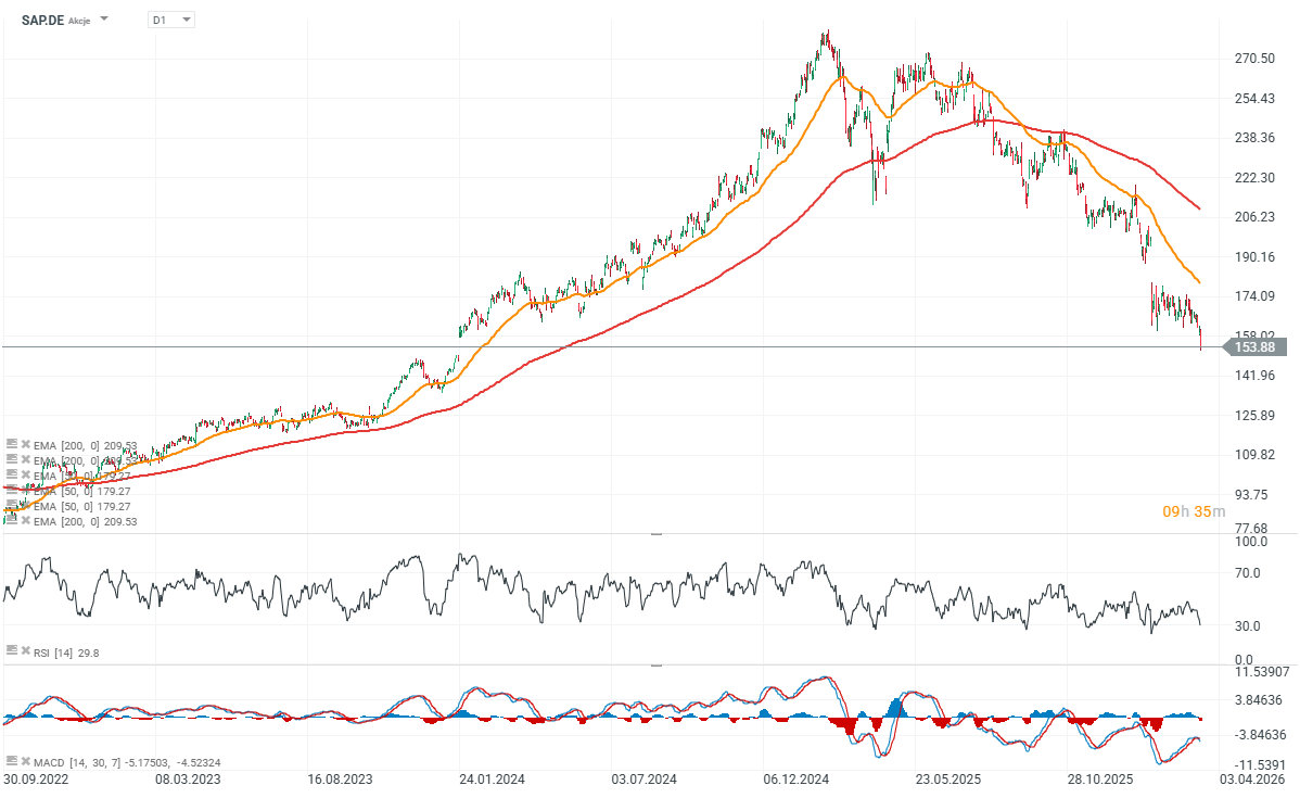 - Atutem SAP pozostają również wysokie koszty zmiany dostawcy po stronie klientów oraz wieloletnie relacje z przedsiębiorstwami, co wzmacnia pozycję firmy na rynku. Jednocześnie w ostatnim czasie SAP opublikował wyniki za czwarty kwartał 2025 roku, które okazały się słabsze od oczekiwań analityków.