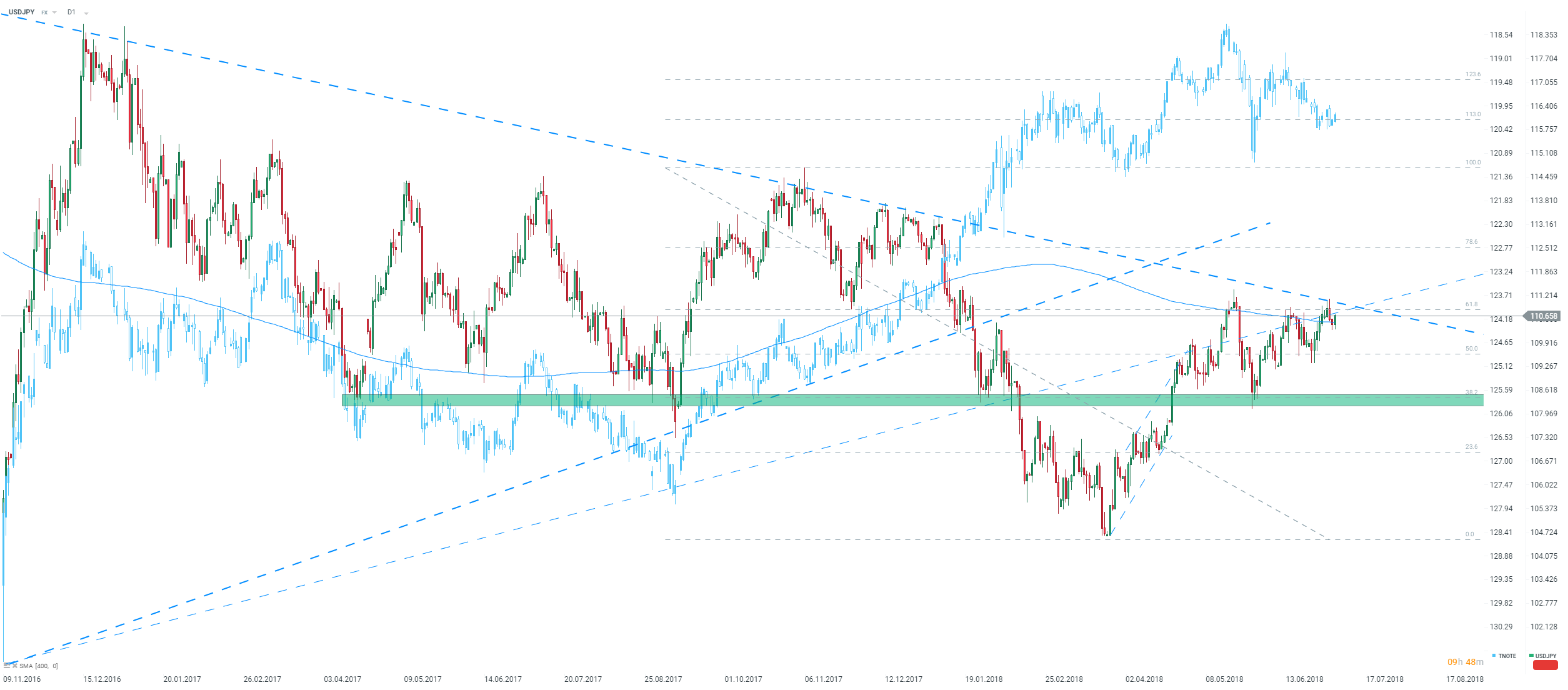 USDJPY znajduje się na ważnym oporze. Nie widzimy dużej możliwości pozytywnego zaskoczenia danymi. Jednak opór w okolicach 111,00 i niżej jest bardzo silny. Źródło: xStation5