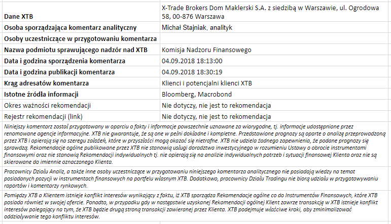 Ta publikacja handlowa jest informacyjna i edukacyjna. Nie jest rekomendacją inwestycyjną ani informacją rekomendującą lub sugerującą strategię inwestycyjną. W materiale nie sugerujemy żadnej strategii inwestycyjnej ani nie świadczymy usługi doradztwa inwestycyjnego. Materiał nie uwzględnia indywidualnej sytuacji finansowej, potrzeb i celów inwestycyjnych klienta. Nie jest też ofertą sprzedaży ani subskrypcji. Nie jest zaproszeniem do nabycia, reklamą ani promocją jakichkolwiek instrumentów finansowych. Publikację handlową przygotowaliśmy starannie i obiektywnie. Przedstawiamy stan faktyczny znany autorom w chwili tworzenia dokumentu. Nie umieszczamy w nim żadnych elementów oceniających. Informacje i badania oparte na historycznych danych lub wynikach oraz prognozy nie stanowią pewnego wskaźnika na przyszłość. Nie odpowiadamy za Twoje działania lub zaniechania, zwłaszcza za to, że zdecydujesz się nabyć lub zbyć instrumenty finansowe na podstawie informacji z tej publikacji handlowej. Nie odpowiadamy też za szkody, które mogą wynikać z bezpośredniego czy też pośredniego wykorzystania tych informacji. Inwestowanie jest ryzykowne. Inwestuj odpowiedzialnie.