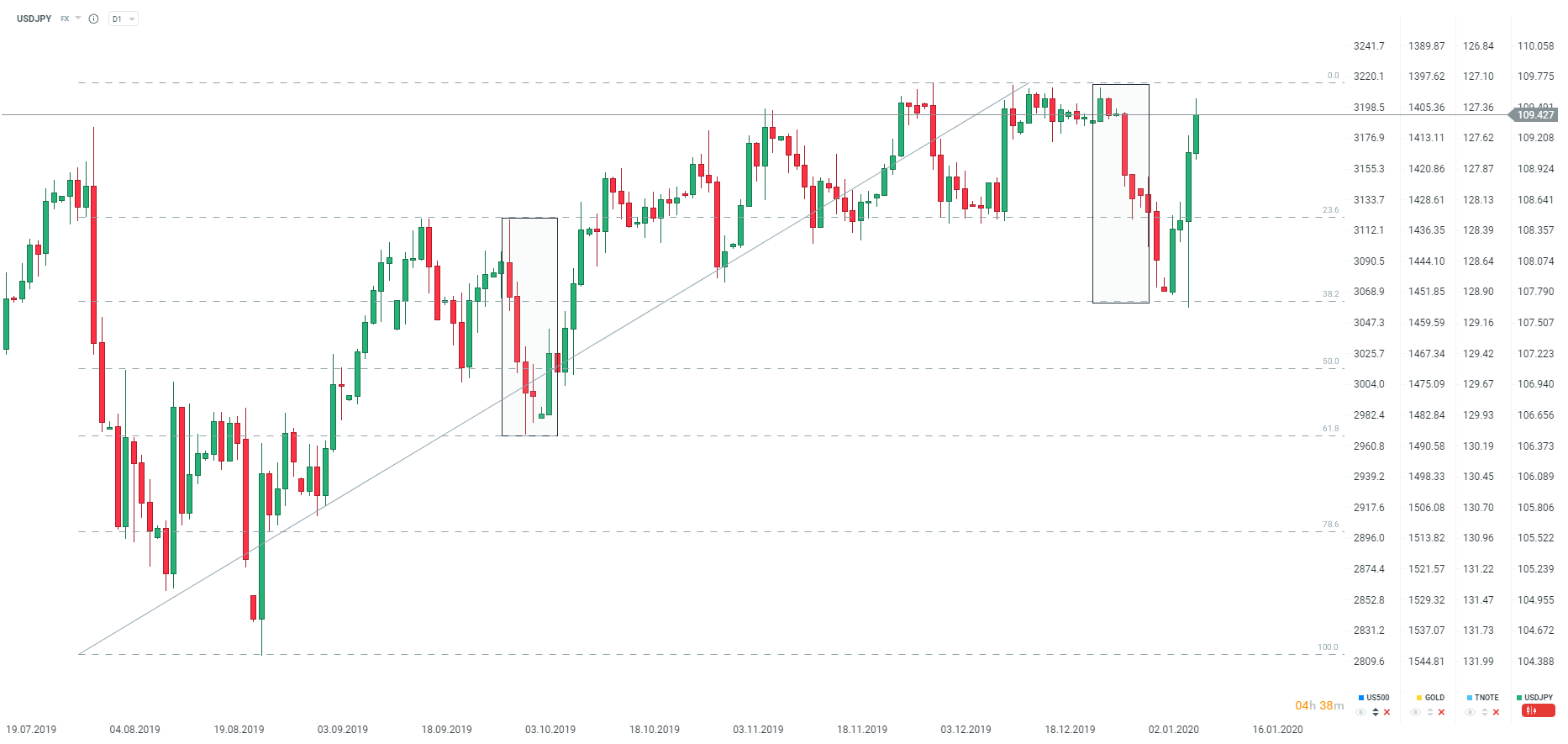 Para USDJPY odrobiła w ostatnich dniach niemal wszystkie straty, co jest związane z brakiem eskalacji konfliktów geopolitycznych na świecie. Źródło: xStation5