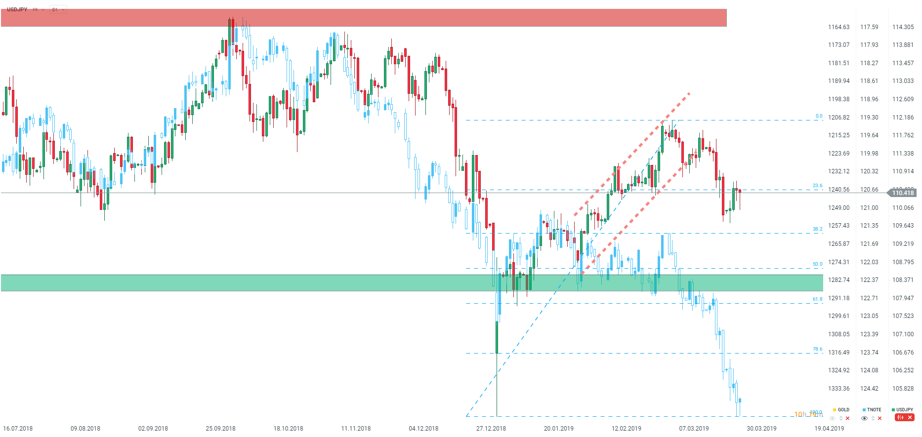 USDJPY próbuje powracać do wzrostów w czym może pomagać konsolidowanie się rentowności. Niemniej jeśli będziemy mieli do czynienia z pogłębieniem się widma spowolnienia, jen może zyskać zainteresowanie inwestorów. Źródło: xStation5