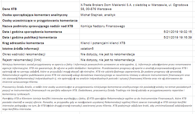 Ta publikacja handlowa jest informacyjna i edukacyjna. Nie jest rekomendacją inwestycyjną ani informacją rekomendującą lub sugerującą strategię inwestycyjną. W materiale nie sugerujemy żadnej strategii inwestycyjnej ani nie świadczymy usługi doradztwa inwestycyjnego. Materiał nie uwzględnia indywidualnej sytuacji finansowej, potrzeb i celów inwestycyjnych klienta. Nie jest też ofertą sprzedaży ani subskrypcji. Nie jest zaproszeniem do nabycia, reklamą ani promocją jakichkolwiek instrumentów finansowych. Publikację handlową przygotowaliśmy starannie i obiektywnie. Przedstawiamy stan faktyczny znany autorom w chwili tworzenia dokumentu. Nie umieszczamy w nim żadnych elementów oceniających. Informacje i badania oparte na historycznych danych lub wynikach oraz prognozy nie stanowią pewnego wskaźnika na przyszłość. Nie odpowiadamy za Twoje działania lub zaniechania, zwłaszcza za to, że zdecydujesz się nabyć lub zbyć instrumenty finansowe na podstawie informacji z tej publikacji handlowej. Nie odpowiadamy też za szkody, które mogą wynikać z bezpośredniego czy też pośredniego wykorzystania tych informacji. Inwestowanie jest ryzykowne. Inwestuj odpowiedzialnie.