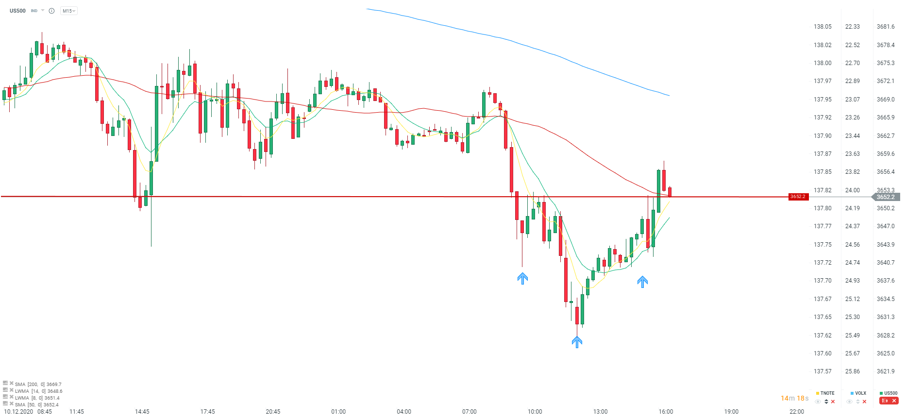 S&P 500 reaguje pozytywnie. WIdzimy coś w postaci oRGR z linią szyi w okolicach 3650. Jeśli poziom ten zostanie utrzymany, można spodziewać się wzrostu w okolice 200 setnej średniej, czyli gdzieś przy 3670. Źródło: xStation5