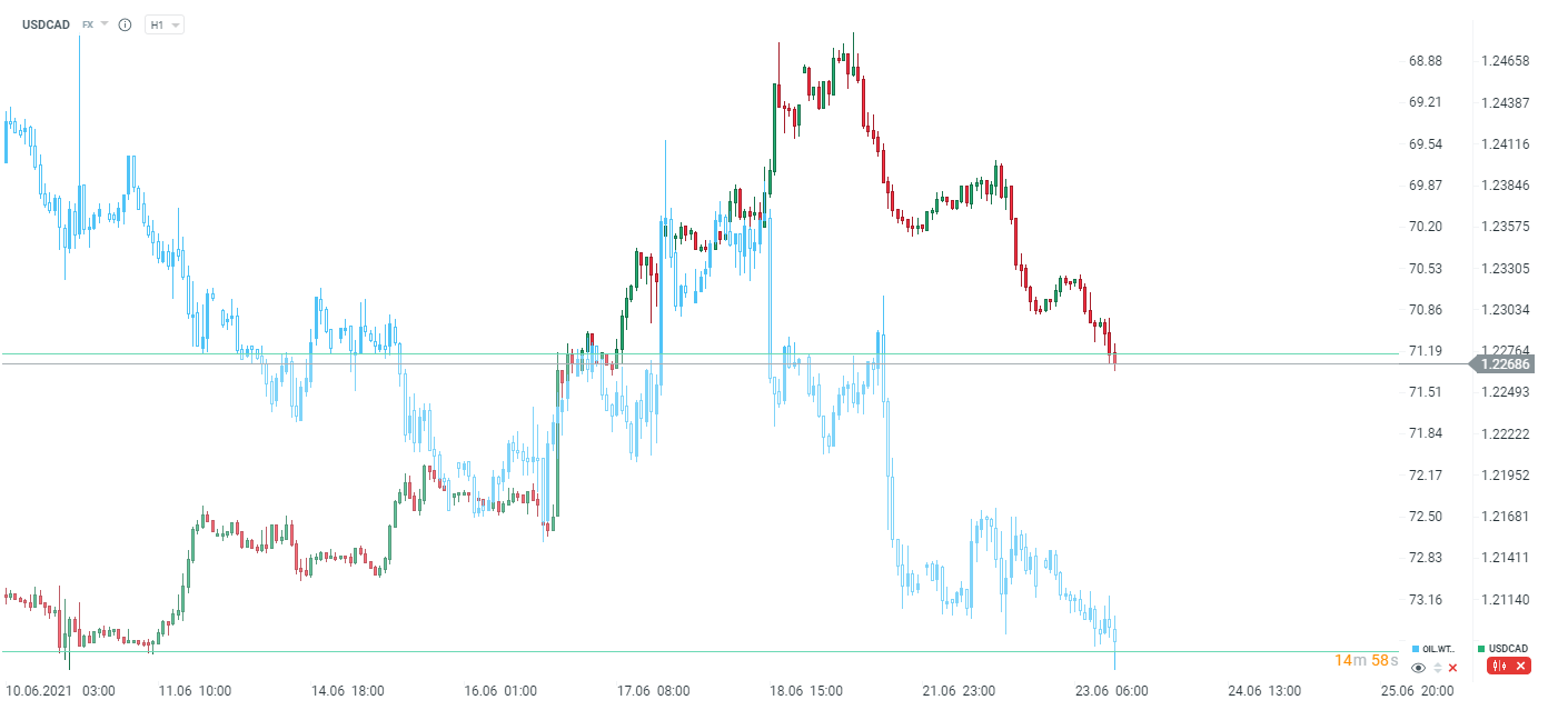 USDCAD kontynuuje spadki, wraz z dalej umacniającą się ropą. Źródło: xStation5