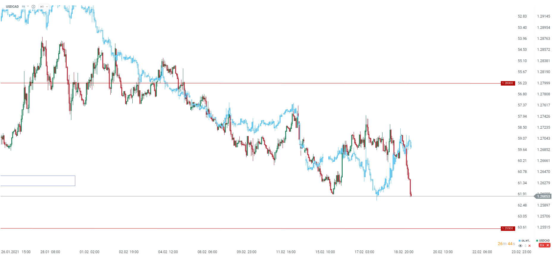 CAD pozostaje mocny, w zasadzie bez konkretnych przyczyn, a w szczególności bez wsparcia ze strony ropy. Źródło: xStation5
