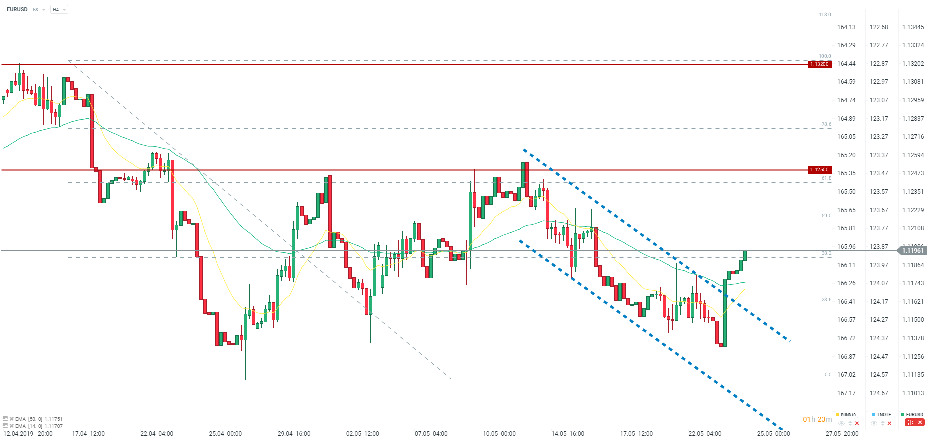 Dolar amerykański praktycznie nie reaguje na opublikowane dane. W tym momencie para odrabia wcześniejsze straty i ponownie przymierza się do testowania poziomu 1,1200. Źródło: xStation5
