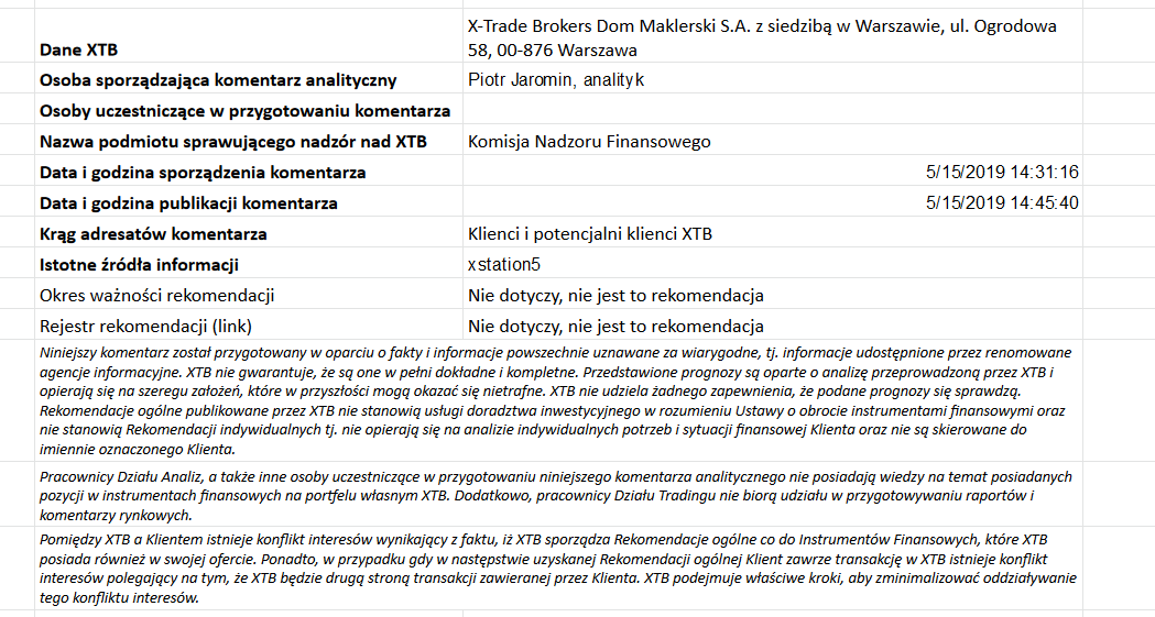 Ta publikacja handlowa jest informacyjna i edukacyjna. Nie jest rekomendacją inwestycyjną ani informacją rekomendującą lub sugerującą strategię inwestycyjną. W materiale nie sugerujemy żadnej strategii inwestycyjnej ani nie świadczymy usługi doradztwa inwestycyjnego. Materiał nie uwzględnia indywidualnej sytuacji finansowej, potrzeb i celów inwestycyjnych klienta. Nie jest też ofertą sprzedaży ani subskrypcji. Nie jest zaproszeniem do nabycia, reklamą ani promocją jakichkolwiek instrumentów finansowych. Publikację handlową przygotowaliśmy starannie i obiektywnie. Przedstawiamy stan faktyczny znany autorom w chwili tworzenia dokumentu. Nie umieszczamy w nim żadnych elementów oceniających. Informacje i badania oparte na historycznych danych lub wynikach oraz prognozy nie stanowią pewnego wskaźnika na przyszłość. Nie odpowiadamy za Twoje działania lub zaniechania, zwłaszcza za to, że zdecydujesz się nabyć lub zbyć instrumenty finansowe na podstawie informacji z tej publikacji handlowej. Nie odpowiadamy też za szkody, które mogą wynikać z bezpośredniego czy też pośredniego wykorzystania tych informacji. Inwestowanie jest ryzykowne. Inwestuj odpowiedzialnie.