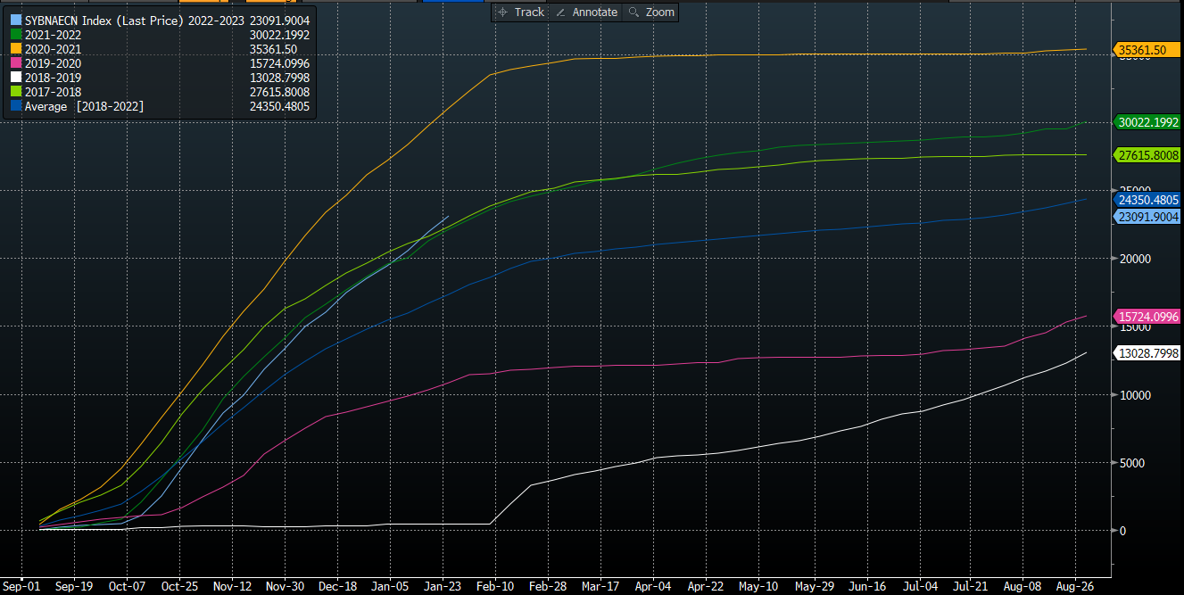 Soja wzrosła w tym tygodniu powyżej 15 USD za buszel w związku z poprawiającymi się perspektywami popytu. Chiny ograniczając restrykcje Covidowe mogą zdecydować się ponownie na zwiększenie zakupów soi na świecie, w tym przede wszystkim z USA. Z drugiej strony osłabły obawy związane z dostawami z Argentyny po serii opadów w ostatnim czasie i postępowi wczesnych zbiorów w Brazylii. W tym samym czasie Departament Rolnictwa USA potwierdził prywatną sprzedaż 130 000 ton soi z dostawą do nieznanych miejsc w sezonie 2022/23, podczas gdy dane z cotygodniowej kontroli eksportu wykazały, że w ostatnim tygodniu skontrolowano 1,806 miliona ton soi pod kątem eksportu. Poprzednie dane pokazały kontrole na poziomie wyraźnie powyżej 2 mln ton.