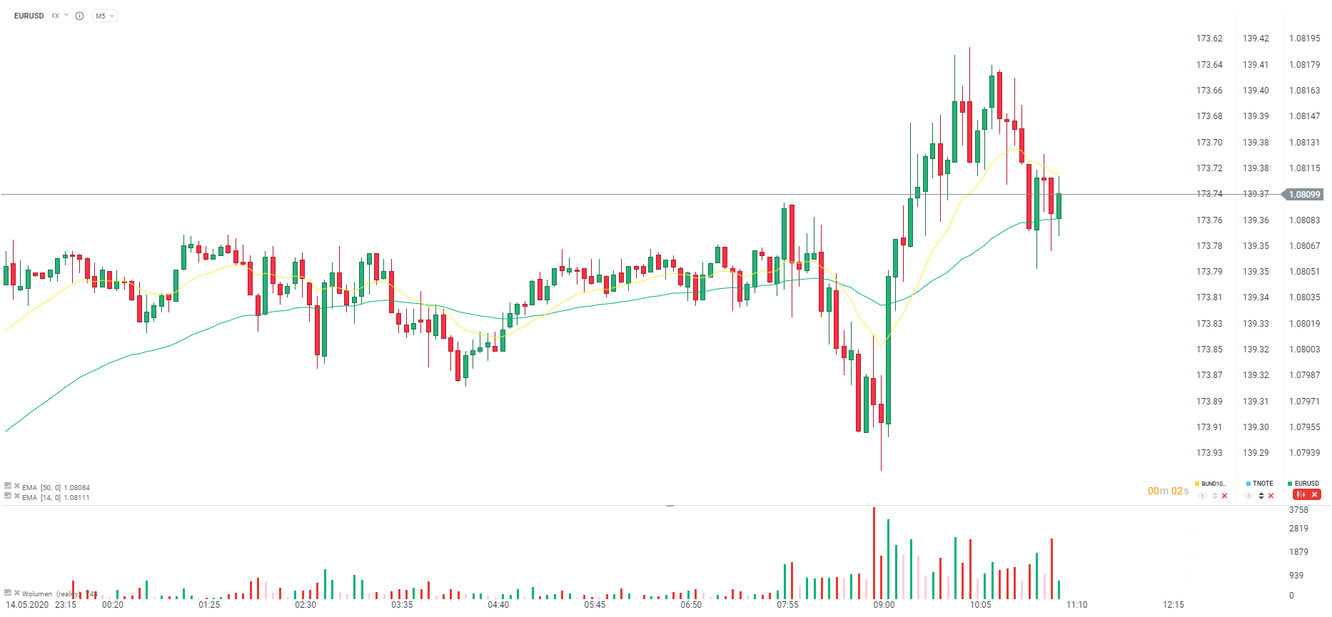 EURUSD zachowuje się mieszanie po odczycie. Pierwsza reakcja była negatywna, później zniesienie negatywnego ruchu. Wydaje się jednak, że para będzie konsolidowała się wokół poziomu 1,0808. Źródło: xStation5
