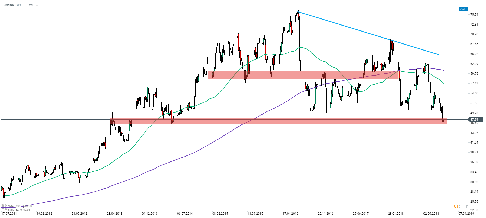 - Akcje Bristol-Myers Squibb zareagowały pozytywnie na długoterminową strefę wsparcia