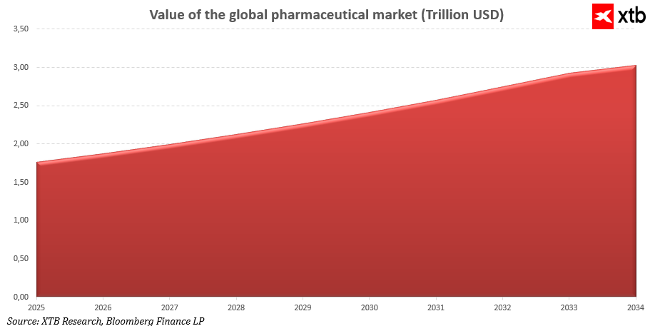 Rynek farmaceutyczny w 2025 roku jest wart około 1,77 biliona dolarów i według prognoz w ciągu najbliższych dziesięciu lat urósł aż do 3,03 biliona. Ten imponujący napędzają trzy potężne trendy. Po pierwsze, globalne społeczeństwa się starzeją, a rosnąca liczba seniorów zwiększa zapotrzebowanie na nowoczesne leki przeciw chorobom przewlekłym. Po drugie, wzrasta liczba osób zmagających się z chorobami takimi jak cukrzyca czy nowotwory, co otwiera ogromne pole do innowacji. Po trzecie, rozwój biotechnologii oraz sztucznej inteligencji pozwala wprowadzać coraz skuteczniejsze i bardziej spersonalizowane terapie.