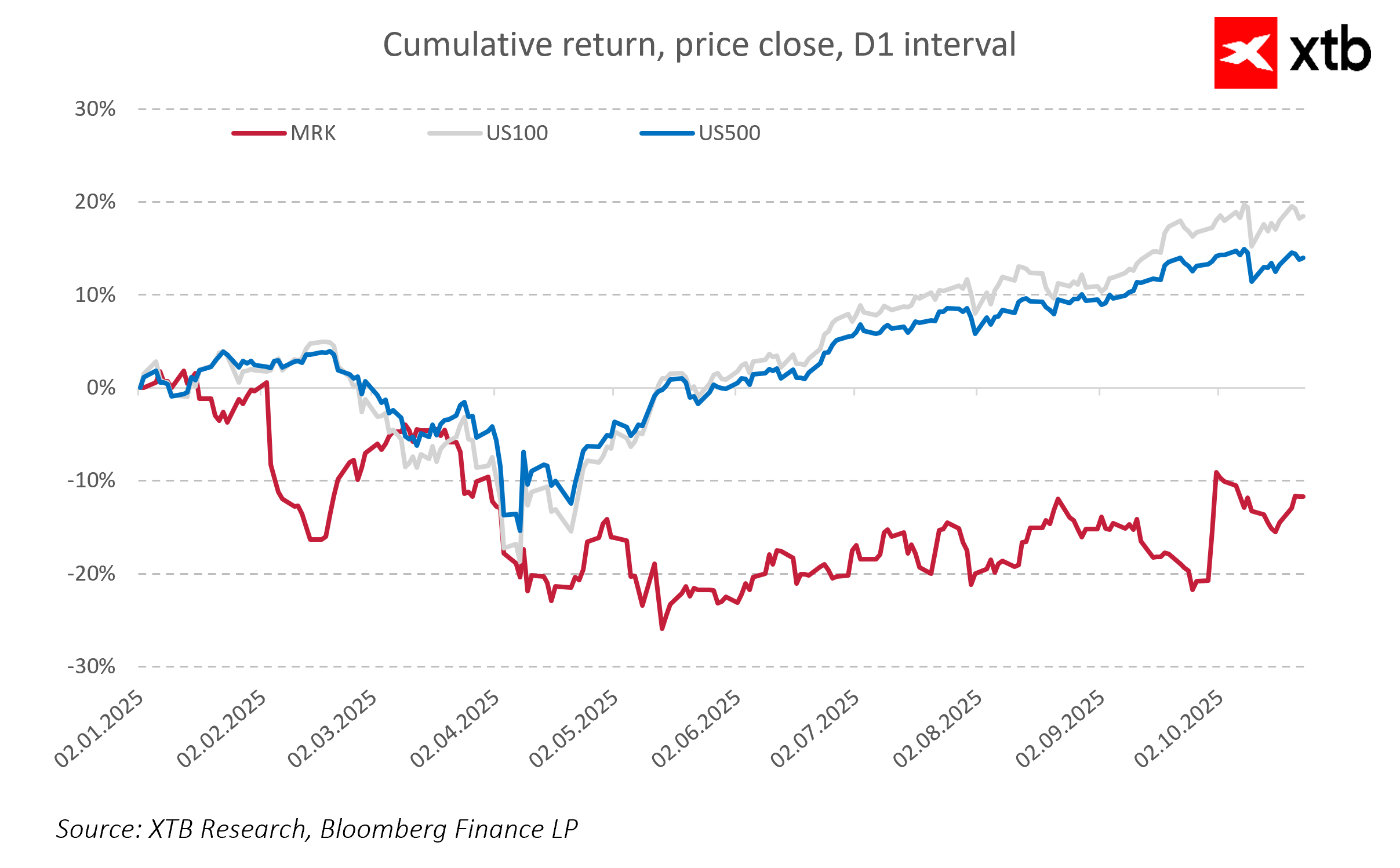 Merck zachowuje defensywny charakter i niską zmienność, dlatego obecne osłabienie można traktować jako tymczasowe niedowartościowanie. Stabilne fundamenty, silne przepływy pieniężne i konsekwentna polityka dywidendowa sprawiają, że spółka pozostaje atrakcyjna dla inwestorów długoterminowych.