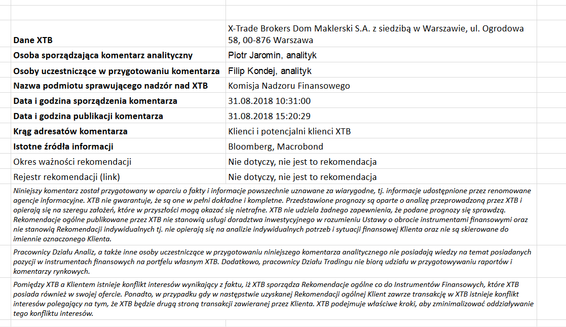 Ta publikacja handlowa jest informacyjna i edukacyjna. Nie jest rekomendacją inwestycyjną ani informacją rekomendującą lub sugerującą strategię inwestycyjną. W materiale nie sugerujemy żadnej strategii inwestycyjnej ani nie świadczymy usługi doradztwa inwestycyjnego. Materiał nie uwzględnia indywidualnej sytuacji finansowej, potrzeb i celów inwestycyjnych klienta. Nie jest też ofertą sprzedaży ani subskrypcji. Nie jest zaproszeniem do nabycia, reklamą ani promocją jakichkolwiek instrumentów finansowych. Publikację handlową przygotowaliśmy starannie i obiektywnie. Przedstawiamy stan faktyczny znany autorom w chwili tworzenia dokumentu. Nie umieszczamy w nim żadnych elementów oceniających. Informacje i badania oparte na historycznych danych lub wynikach oraz prognozy nie stanowią pewnego wskaźnika na przyszłość. Nie odpowiadamy za Twoje działania lub zaniechania, zwłaszcza za to, że zdecydujesz się nabyć lub zbyć instrumenty finansowe na podstawie informacji z tej publikacji handlowej. Nie odpowiadamy też za szkody, które mogą wynikać z bezpośredniego czy też pośredniego wykorzystania tych informacji. Inwestowanie jest ryzykowne. Inwestuj odpowiedzialnie.