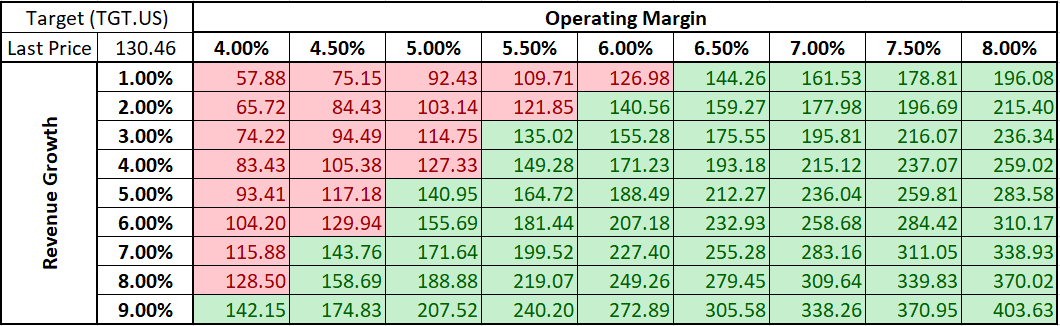 Rzućmy okiem na wycenę Target za pomocą 3 często stosowanych metod wyceny - DCF, mnożników i modelu wzrostu Gordona. Chcemy podkreślić, że wyceny te służą wyłącznie do celów prezentacji i nie powinny być postrzegane jako rekomendacje lub ceny docelowe.