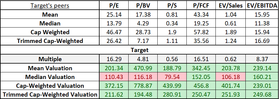 Jak widać, niezależnie od sposobu, w jaki zdecydujemy się wycenić Target w odniesieniu do mnożników rówieśników, wyceny wskazują, że firma jest niedowartościowana.
