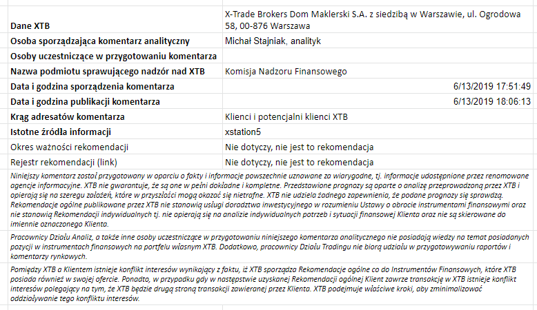 Ta publikacja handlowa jest informacyjna i edukacyjna. Nie jest rekomendacją inwestycyjną ani informacją rekomendującą lub sugerującą strategię inwestycyjną. W materiale nie sugerujemy żadnej strategii inwestycyjnej ani nie świadczymy usługi doradztwa inwestycyjnego. Materiał nie uwzględnia indywidualnej sytuacji finansowej, potrzeb i celów inwestycyjnych klienta. Nie jest też ofertą sprzedaży ani subskrypcji. Nie jest zaproszeniem do nabycia, reklamą ani promocją jakichkolwiek instrumentów finansowych. Publikację handlową przygotowaliśmy starannie i obiektywnie. Przedstawiamy stan faktyczny znany autorom w chwili tworzenia dokumentu. Nie umieszczamy w nim żadnych elementów oceniających. Informacje i badania oparte na historycznych danych lub wynikach oraz prognozy nie stanowią pewnego wskaźnika na przyszłość. Nie odpowiadamy za Twoje działania lub zaniechania, zwłaszcza za to, że zdecydujesz się nabyć lub zbyć instrumenty finansowe na podstawie informacji z tej publikacji handlowej. Nie odpowiadamy też za szkody, które mogą wynikać z bezpośredniego czy też pośredniego wykorzystania tych informacji. Inwestowanie jest ryzykowne. Inwestuj odpowiedzialnie.