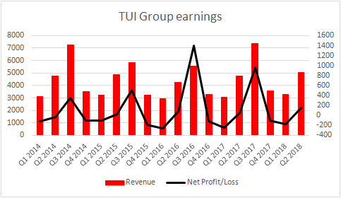 Zacznijmy od ostatniego raportu wyników TUI. Spółka osiągnęła przychody na poziomie 5,016 miliardów euro w trzecim kwartale roku fiskalnego (okres odpowiadający drugiemu kwartałowi roku kalendarzowego). Podczas, gdy jest to wzrost o 5% w stosunku do ubiegłego roku, EBITA spółki (preferowana przez TUI miara zysku) spadła w tym samym okresie o 18%, do 193,4 milionów euro. Na pierwszy rzut oka może być to rozczarowanie, jednak warto zagłębić się w szczegóły. Wprawdzie spółka odnotowała spowolnienie sprzedaży w segmencie pakietów wakacyjnych, ale inne segmenty, jak na przykład rejsy statkami wycieczkowymi czy hotele odnotowały skokowy wzrost sprzedaży. Jest to o tyle ważne, że tego typu usługi zazwyczaj cechują się dużo wyższą marża dla spółki. Sprzedaż pakietów wakacyjnych ma największych udział w przychodach grupy, więc część inwestorów może być zaniepokojona takim rozwojem spraw. Niemniej jednak, słabsze wyniki tego segmentu mogą być przypisane do czynników jednorazowych. Konkretnie mówiąc, władze spółki przy okazji publikacji wyników wyjaśniły, że spowolnienie sprzedaży było głównie odnotowane w Europie Północnej (największy rynek dla TUI), co wynikało z faktu, że część klientów zdecydowała się wstrzymać z wyjazdami na czas Mistrzostwa Świata w piłce nożnej. Ponadto, spółka wymieniła osłabienie się funta i strajki we Francji jako inne czynniki wpływające negatywnie na ostatni raport wyników. Pomimo słabszych wyników w ujęciu rocznym TUI pozostaje optymistycznie nastawiony wobec pozostałych miesięcy roku i zdecydował się podtrzymać prognozę dwucyfrowego wzrostu zysku w 2018 roku. Warto zauważyć, że jeśli ta prognoza się sprawdzi będzie to czwarty rok z rzędu, kiedy spółka cieszy się tak dynamicznym wzrostem zysku.
